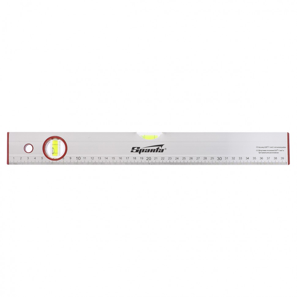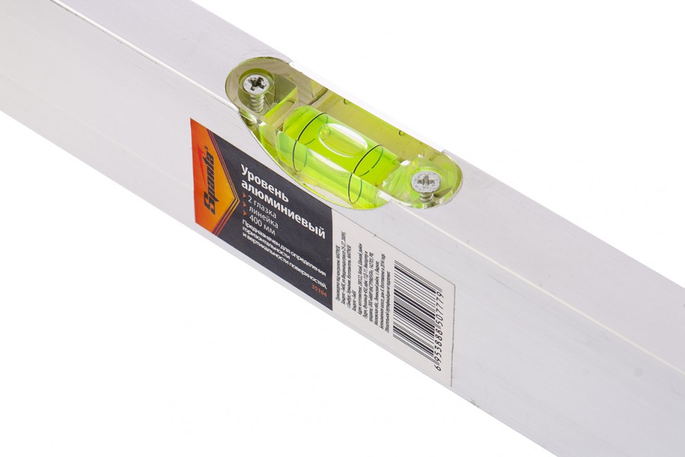 Алюминиевый уровень Sparta 35104 длиной 400 мм, с 2 глазками и линейкой, рассчитан на применение в быту и в производственных условиях. Он поможет добиться точного выстраивания разметочных линий для последующей установки конструкций, полок, укладки облицовочных материалов и т.д. Две пузырьковые ампулы обеспечивают точный контроль отклонений поверхностей от горизонтальной и вертикальной плоскостей.Для определения отклонения вертикали 90 градусов необходимо использовать пузырьковую ампулу только в верхнем положении уровня. Только базовая поверхность является рабочей (противоположная ампуле 180 градусов).ПреимуществаАнодированный алюминиевый профиль, из которого выполнен уровень, отличается прочностью и антикоррозионными свойствами.На корпусе имеется шкала, позволяющая осуществлять линейные измерения.Благодаря отверстию в корпусе инструмент можно хранить в подвешенном виде.
