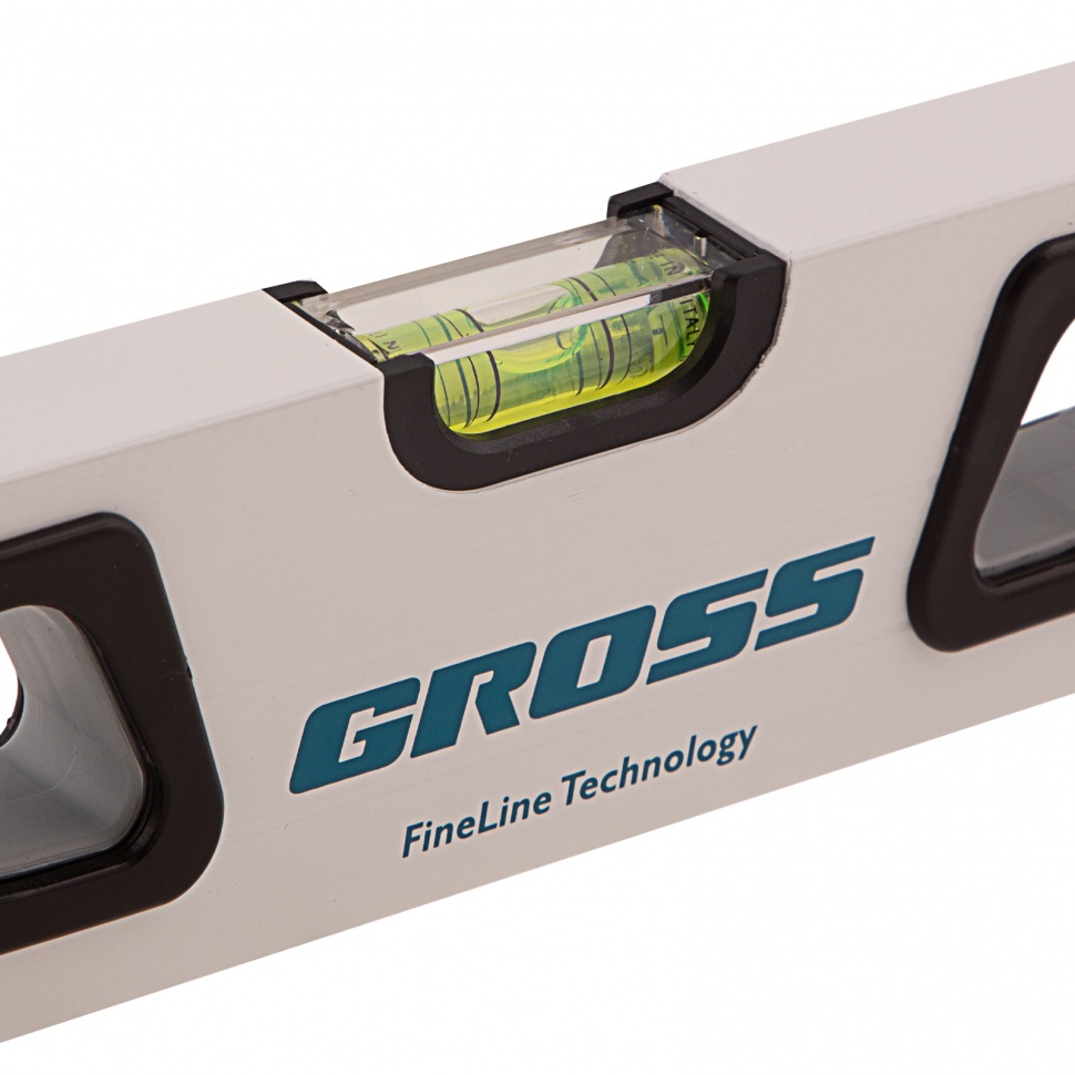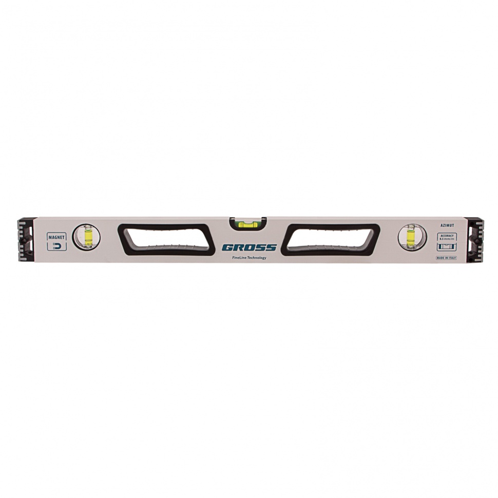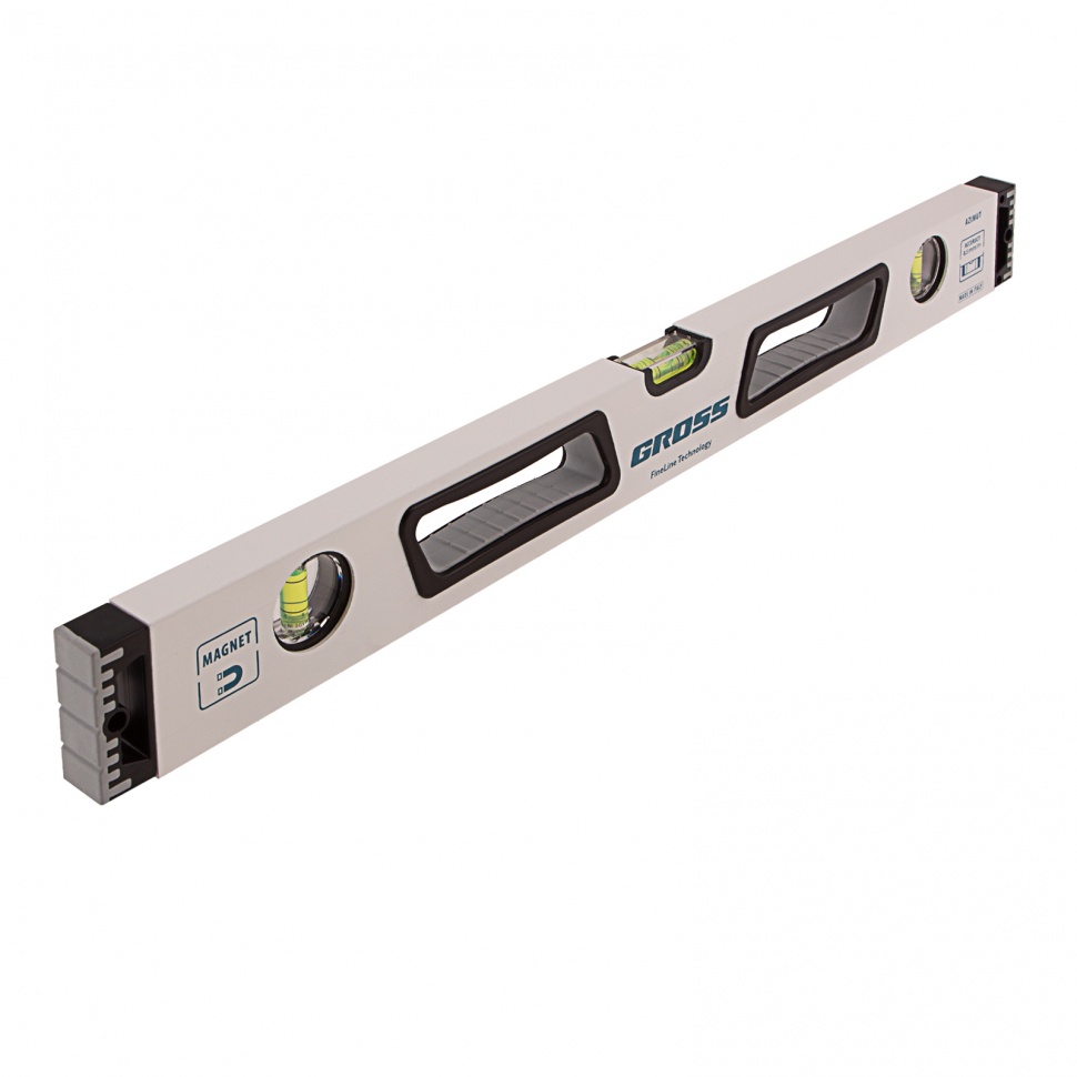 Уровень алюминиевый, 600 мм, усиленный, рукоятки, фрезерованный, 3 глазка, магнитный Gross