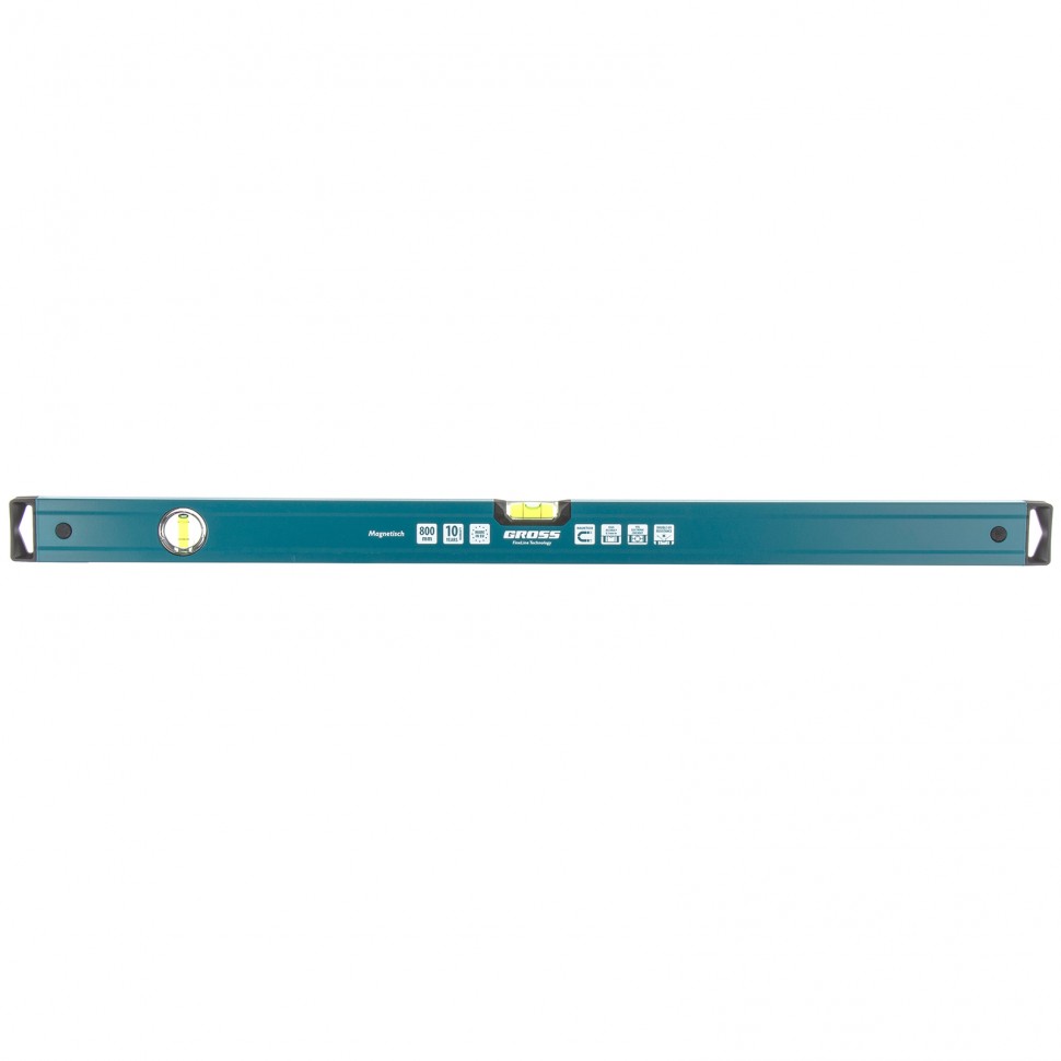 Алюминиевый уровень Gross Magnetisch 33712 длиной 800 мм имеет 2 глазка для определения отклонений от вертикали или горизонтали. Пригодится для решения как бытовых, так и профессиональных задач во время строительства или ремонта. Погрешность при проведении замеров не превышает 1 мм на метр (0,057 градуса).Для определения отклонения вертикали 90 градусов необходимо использовать пузырьковую ампулу только в верхнем положении уровня. Только базовая поверхность является рабочей (противоположная ампуле 180 градусов).ПреимуществаПрочность и долговечность — каркас выполнен из алюминиевого профиля, а корпус — из ударопрочной пластмассы.Удобство использования — за счет встроенных магнитов уровень можно фиксировать на металлических поверхностях.Увеличенные ампулы — с инструментом комфортно работать.Высокая точность замеров — монтаж глазков осуществлен под электронным контролем.Высокое качество — строительный уровень изготовлен в Европе.
