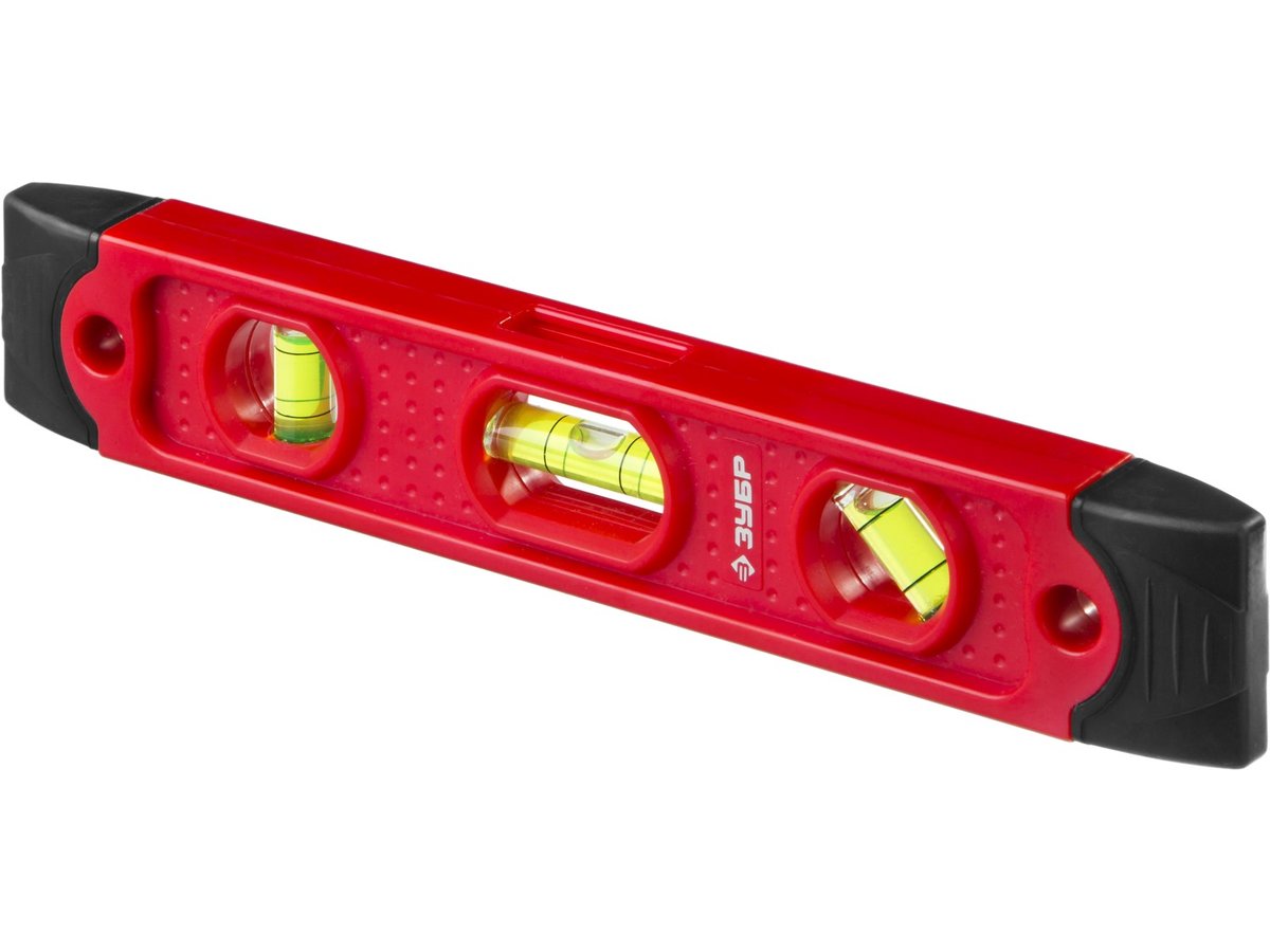 Усиленный магнитный уровень Sparta «Торпедо» (IV) 346115 длиной 230 мм, пластмассовый, с 3 глазками, — оптимальный вариант для бытового использования. 3 глазка служат для проверки горизонтальных и вертикальных поверхностей и соответствия углу 45 градусов. За счет небольшой длины инструментом удобно работать в труднодоступных местах и ограниченном пространстве.Для определения отклонения вертикали 90 градусов необходимо использовать пузырьковую ампулу только в верхнем положении уровня. Только базовая поверхность является рабочей (противоположная ампуле 180 градусов).ПреимуществаНадежность уровня обеспечивает прочная пластмасса, из которой он выполнен.Металлические пластины усиливают корпус, что увеличивает ресурс инструмента.За счет магнитов уровень можно зафиксировать на металлических поверхностях, что сделает более удобными сантехнические работы.В корпусе имеются отверстия для подвесного хранения инструмента.