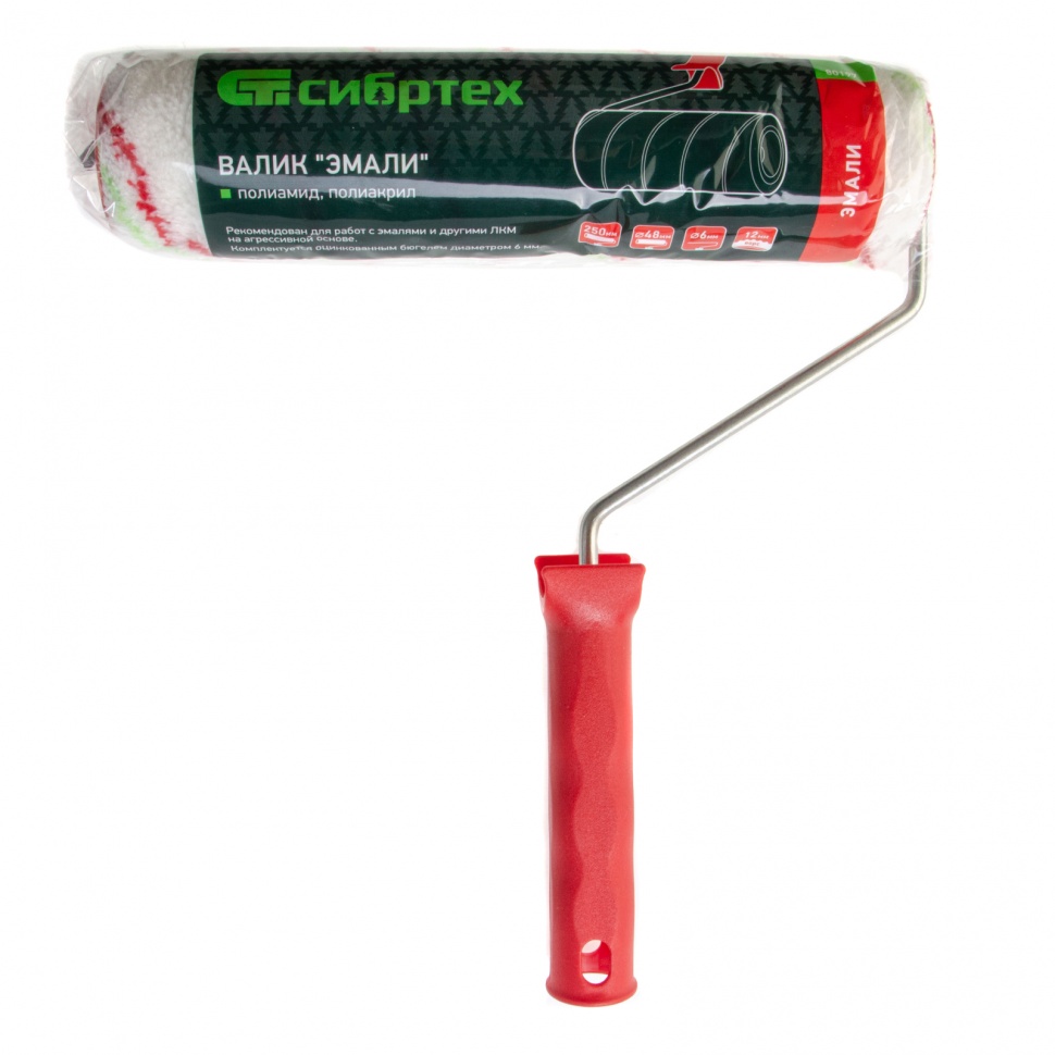 Валик Сибртех «Эмали» 80197 из полиамида и полиакрила, с ручкой 6 мм, роликом 250 х 48 мм, длиной ворса 12 мм, предназначен для проведения малярных работ. Валик повышенной износостойкости можно использовать для нанесения любых ЛКМ, в том числе содержащих агрессивные вещества, на поверхности с различной фактурой. Рекомендован для работ с эмалями.ПреимуществаШубка с добавлением полиамидного волокна обладает повышенной износостойкостью, хорошо прокрашивает неровные участки и не ворсит.На окрашиваемой поверхности не остается следов за счет бесшовной структуры и обработанных краев валика.Свободное вращение ролика обеспечивает высокий коэффициент отдачи краски на поверхность.Классическая конструкция валика с внутренней трубкой позволяет легко снимать и надевать его на бюгель для очистки или замены.Технология производства Termofusion Coinjection увеличивает рабочий ресурс валика и повышает эффективность окрашивания.Шубка надежно зафиксирована на валике термическим способом.Оцинкованный бюгель защищен от негативного