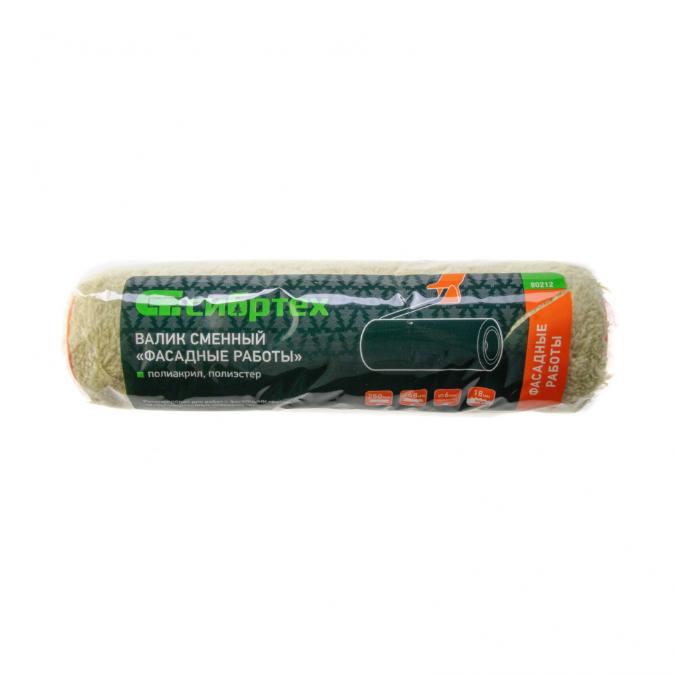 Валик сменный "Фасадные работы", 250 мм, ворс 18 мм, D48 мм, D ручки - 6 мм, полиакрил, полиэстер Сибртех