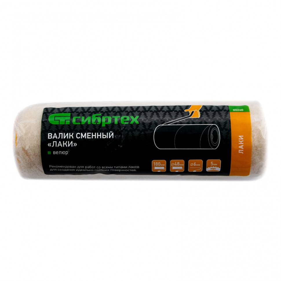 Сменный валик Сибртех «Лаки» 80240 с ворсом 5 мм из велюра, роликом 180 х 48 мм, под ручку 6 мм, подходит к модели Сибртех 80229. За счет шубки из велюра с коротким ворсом он равномерно наносит материал тонким слоем, поэтому оптимален для малярных работ с лаками. Валик шириной 180 мм удобен для окрашивания больших площадей.ПреимуществаБыстрая установка — ролик имеет классическую конструкцию с трубкой внутри, что экономит время при подготовке к работе.Равномерное окрашивание — шубка с обработанными краями и бесшовной структурой не оставляет следов на поверхности.Возможность многократного использования — шубка надежно зафиксирована на ролике методом термического приклеивания.Эффективная и комфортная работа — надетый на бюгель валик свободно вращается, обеспечивая наивысшую отдачу лака или краски на поверхность.Надежность — валик изготовлен по технологии нового поколения Termofusion Coinjection, что повышает его ресурс и качество окрашивания.