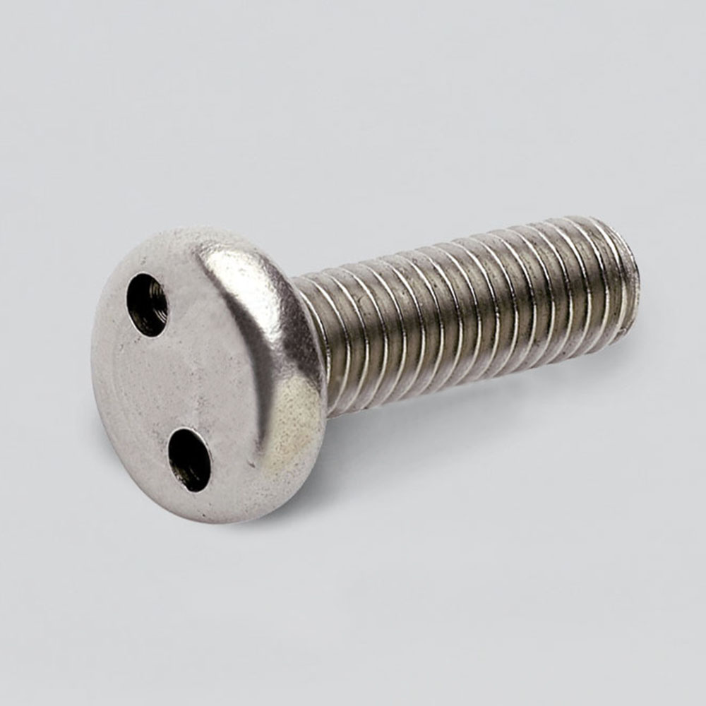 Винт Art 88111 или антивандальный винт. Используется там где необходимо обеспечить защиту от несанкционированного выкручивания или съема конструкций. Шлиц типа Snake-eye представляет собой два два отверстия в головке винта и для работы с ним требуется специальный инструмент. Изготовленный из нержавеющей стали он обладает повышенной прочностью, а низкопрофильная головка обеспечивает дополнительную защиту от спила или срубания винта.