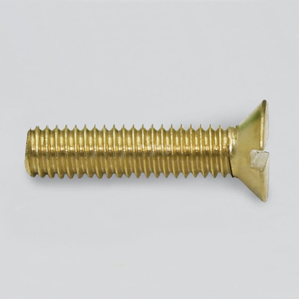 Винт DIN 963 латунный с потайной головкой и прямым шлицем обеспечивает идеальное сочетание декоративного вида и долговечности. Латунь придает винту устойчивость к коррозии и элегантный внешний вид, делая его идеальным для использования в визуально значимых местах.