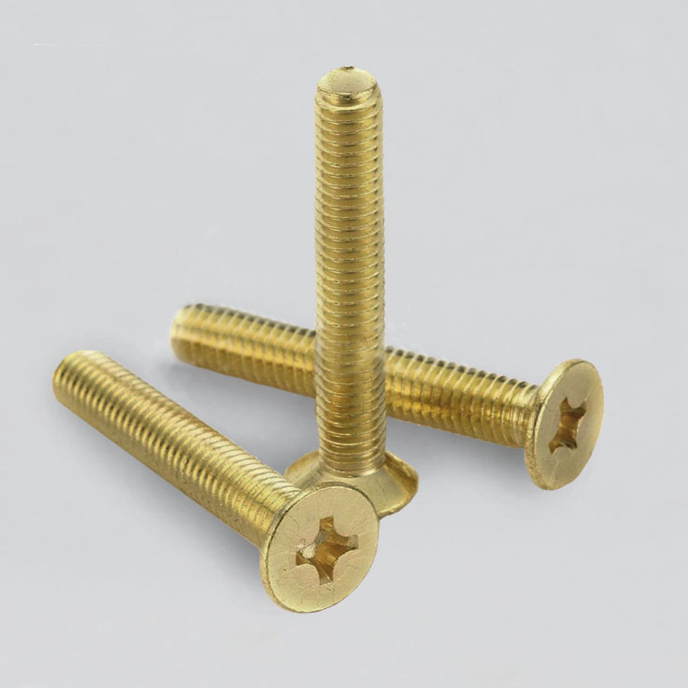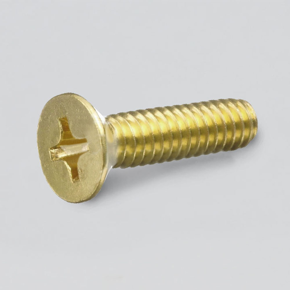 Винт DIN 965 латунный с потайной головкой и крестообразным шлицем представляет собой надежный и декоративный элемент крепежа. Латунь обеспечивает превосходную коррозийную стойкость и элегантный вид, делая винт идеальным для применения во влажных условиях.